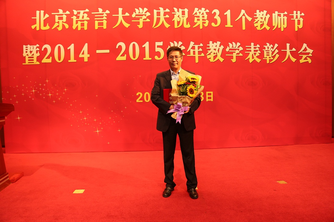 9月8日下午,北京语言大学庆祝第31个教师节暨2014-2015学年教学奖表彰大会在逸夫楼报告厅顺利召开。我院韩玉国副院长、别红缨院长助理分别获得“北京语言大学第二届教学名师奖”和“北京语言大学第十一届优秀教学奖”二等奖,李宇明书记和崔希亮校长为他们颁发了奖状。