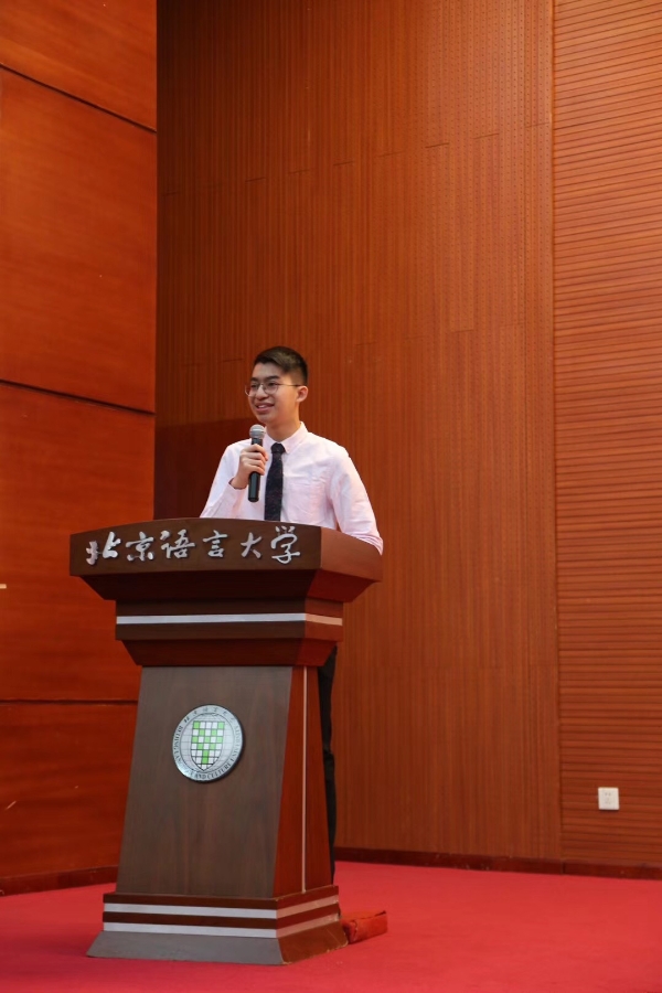 大家上午好!我是来自北京语言大学预科学院K6班的学生,王轩茗,有幸在此代表全体同学发言。