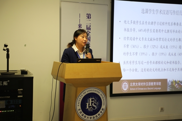 本届研讨会会议形式丰富,设有圆桌会谈、大会报告和分组汇报等环节。在16日晚间举行的圆桌会谈上,韩玉国副教授引领与会者一起走进了专业/学术汉语的世界,大家对专业/学术汉语的定位、教学目标、教学内容、学成目标、语言学特征等各方面进行了热烈的讨论,为研讨会进行了充分的热身。17日上午,大会邀请四位专家做了专题报告。施春宏教授提出了词汇教学新理念,内容丰富,语言幽默,开阔了词汇研究的新视野;余蓝副教授对南亚师资项目生在文化适应性方面的特征进行了说明解释,数据详实,观点明晰;李海燕副教授的报告直接针对留学生的学术写作能力培养,实用性强,具有相当的启发意义;韩玉国副教授的报告提出了构建语法意识的迫切性,并结合案例分析,探讨了汉语教学中提升语法意识的一些做法。四位专家的报告从不同的角度,给对外汉语教学提出了新方法,新思路,新课题。与会代表一致表示,大会报告非常成功。