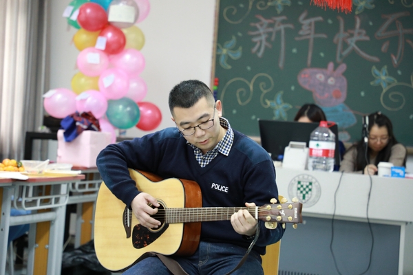 第二监狱的干警也带来了两曲精彩的吉他弹唱《春风十里》和《友谊地久天长》,大家纷纷啧啧称“帅”。