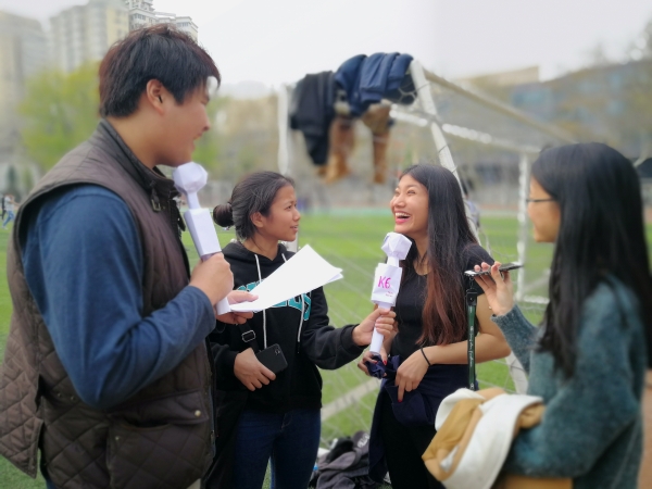 2018年4月10日,预科教育学院举办了学生趣味运动会。在运动会如火如荼进行的同时,学院高级班的学生也在有条不紊地进行新闻采访,这是高级班的一项任务型活动。任务成果为分组完成的三篇角度不同的新闻稿。