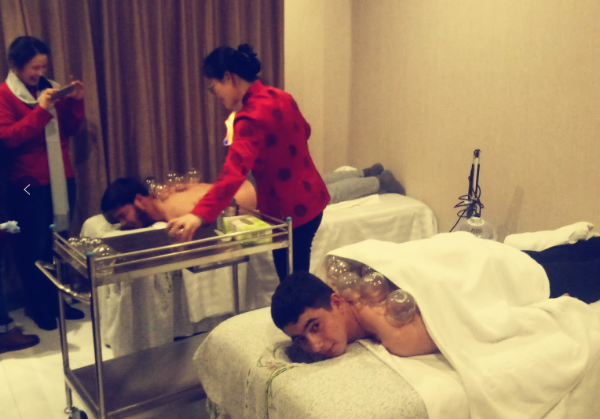 参观结束后,一系列让学生眼花缭乱、赞不绝口的中医文化体验便紧锣密鼓地展开了。其中,最让学生兴奋和震惊的是中医针灸、拔罐和艾灸的近距离真实体验,让大家流连忘返......